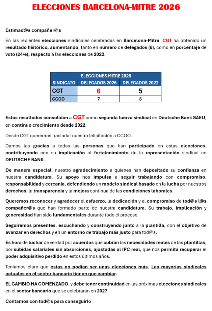 • RESULTADOS ELECCIONES BARCELONA-MITRE 2026: EL CAMBIO HA COMENZADO
